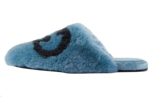 Gucci Interlocking G Faux-Fur Slippers Blue Black